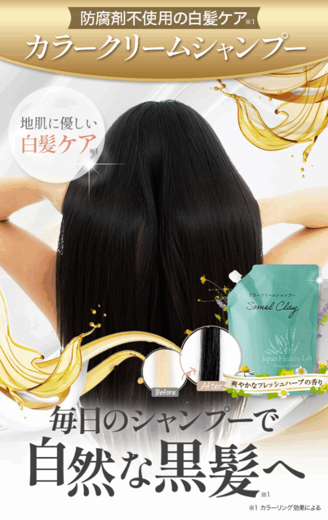 しかし、ソメルクレイは「防腐剤不使用」で頭皮に優しく、いつものシャンプーと同じ感覚で白髪ケアができる点に、