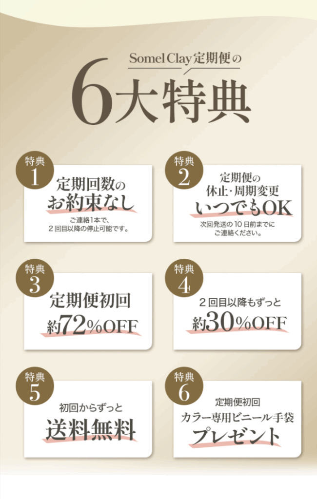 ソメルクレイを最安値で購入できる公式サイトの定期コースですが、