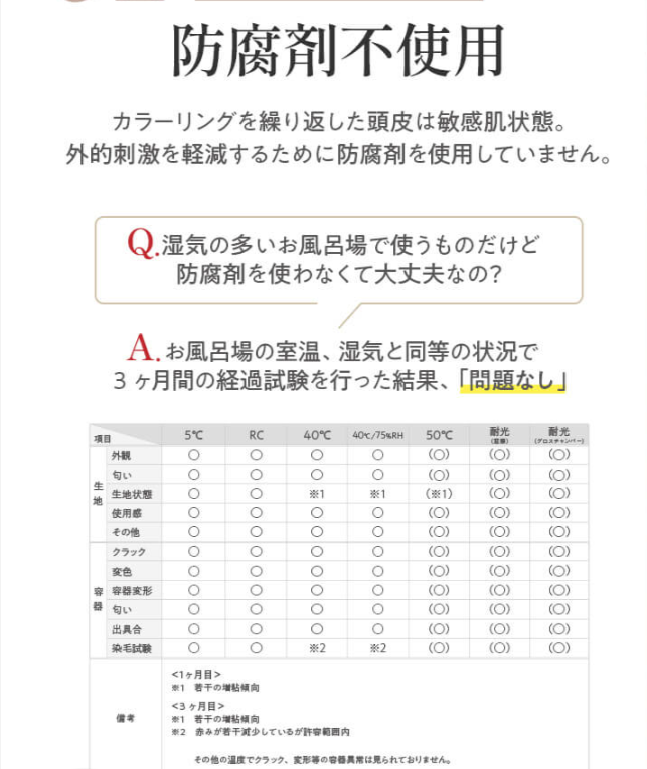 防腐剤フリー・8つの無添加!デリケートな頭皮へのこだわり